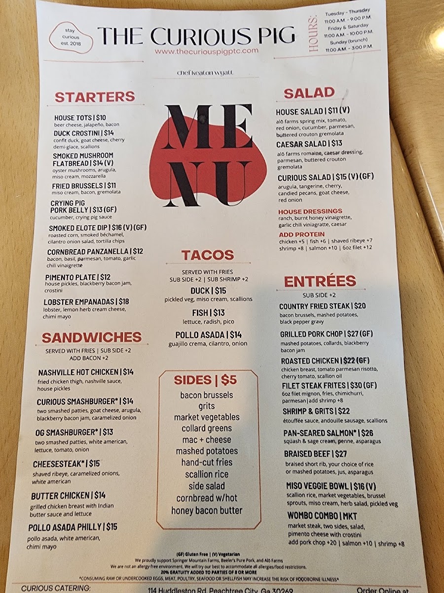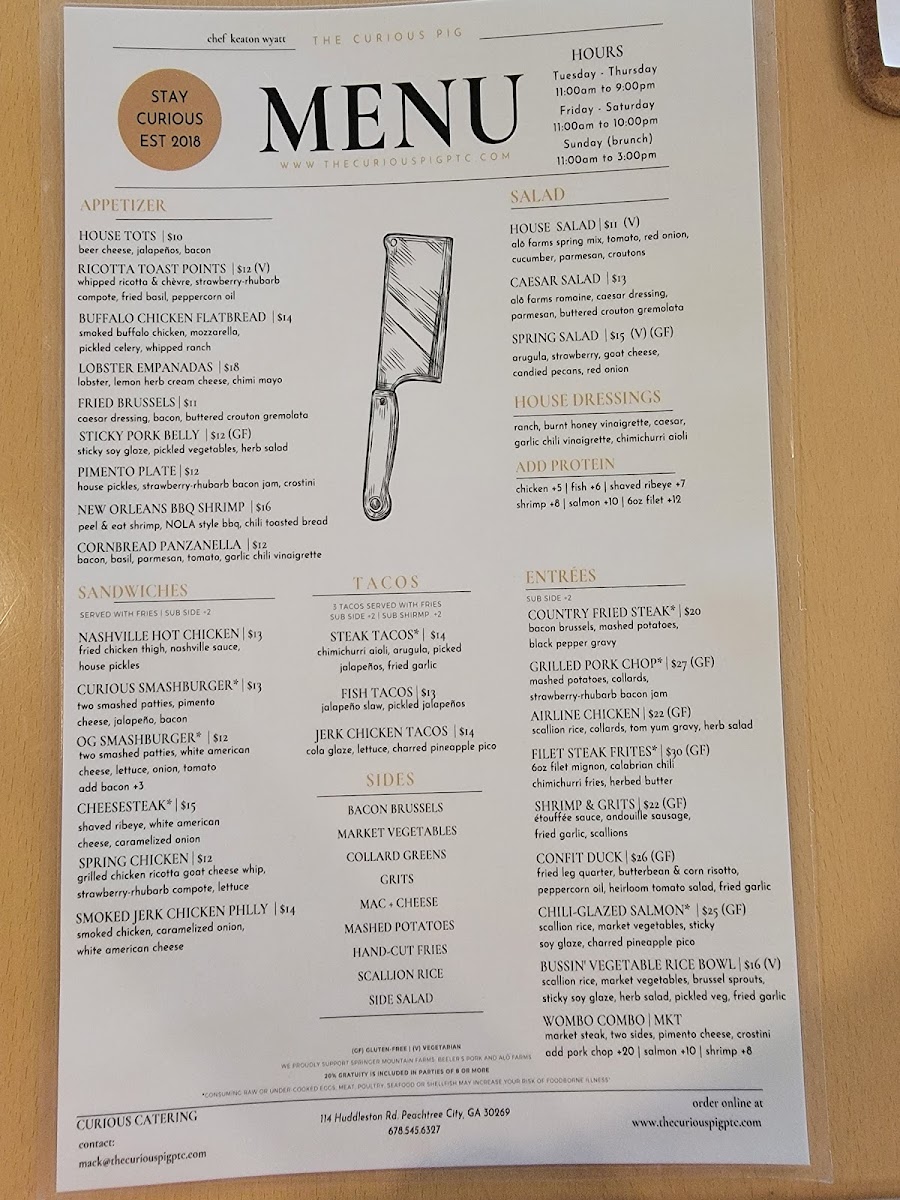 If you’re heading to 114 Huddleston Rd in Peachtree City, you’ll want to take a good look at The Curious Pig Menu before you even step through the door. It’s the kind of lineup that makes you pause for a second because everything sounds tempting. Think slow-smoked barbecue stacked high on soft buns, brisket with that perfect bark, and ribs that practically slide off the bone. Then, just when you think it’s all about classic Southern comfort, you notice the creative twists-bold sauces, loaded sides, and hearty plates that feel both familiar and a little unexpected.